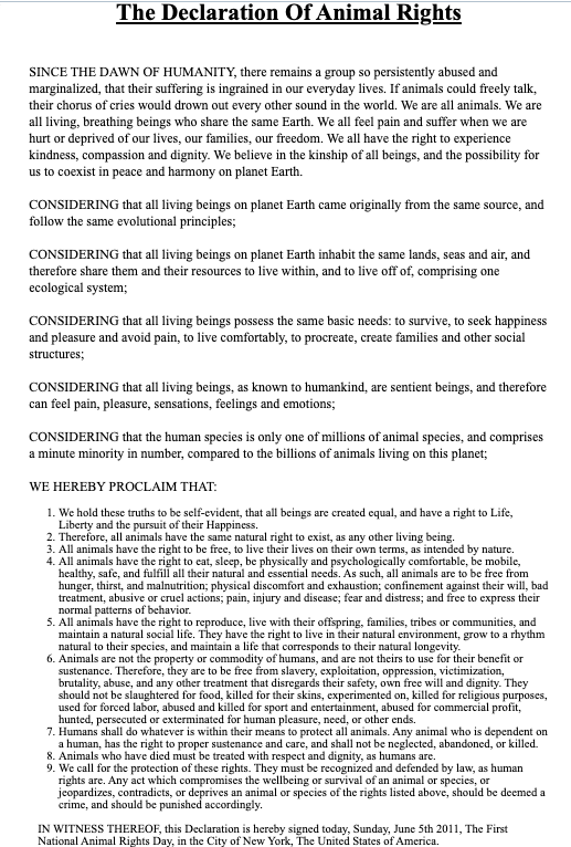 “To the animals who have been killed by human greed, selfishness, and bloodlust. In their names, and in the names of current and future generations of innocent beings who will suffer and die as a result of human brutality, the liberators are striking back. Our fellow creatures who have been mutilated, slaughtered, burned, poisoned, strangled, gassed, shot, electrocuted, microwaved, run over, skinned, eaten, enslaved, and domesticated are now being defended. Humans, beware!”